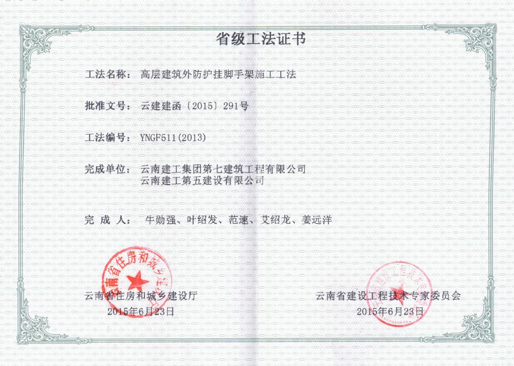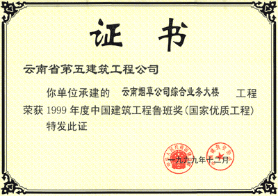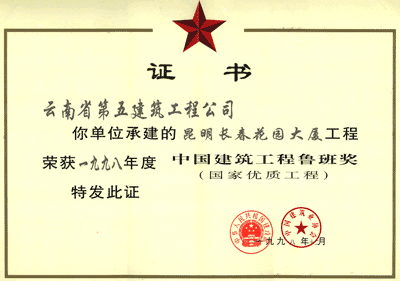 美亞大廈魯班獎(jiǎng)狀