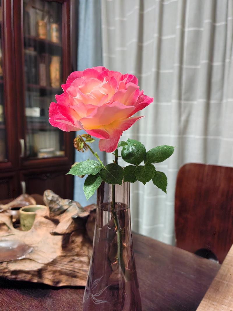 陽(yáng)臺(tái)上的薔薇開了,