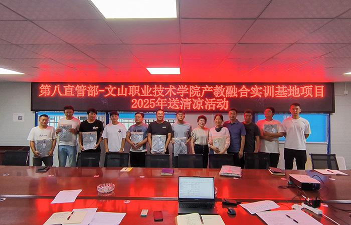 7月18日,第八直管部工會(huì)到文山職業(yè)技術(shù)學(xué)院產(chǎn)教融合實(shí)訓(xùn)基地項(xiàng)目開展2025年送清涼活動(dòng),為堅(jiān)守一線職工發(fā)放了防曬服,送上直管部工會(huì)最真摯的關(guān)懷。