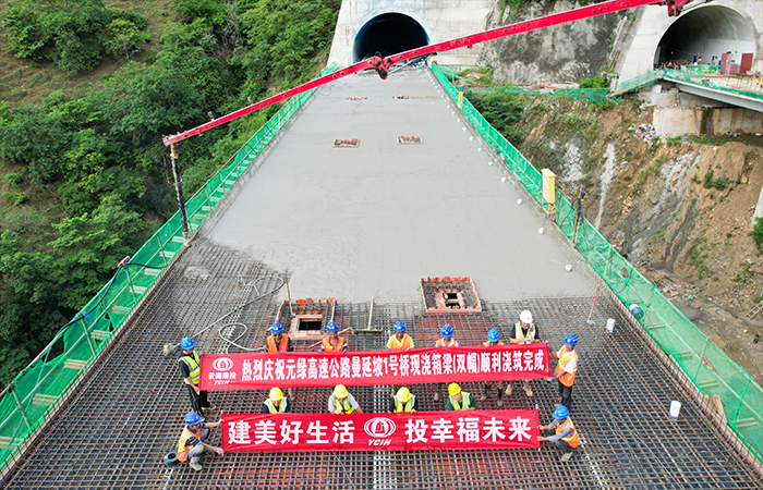 元綠高速公路項(xiàng)目二分部曼延坡1號(hào)中橋順利完成箱梁澆筑